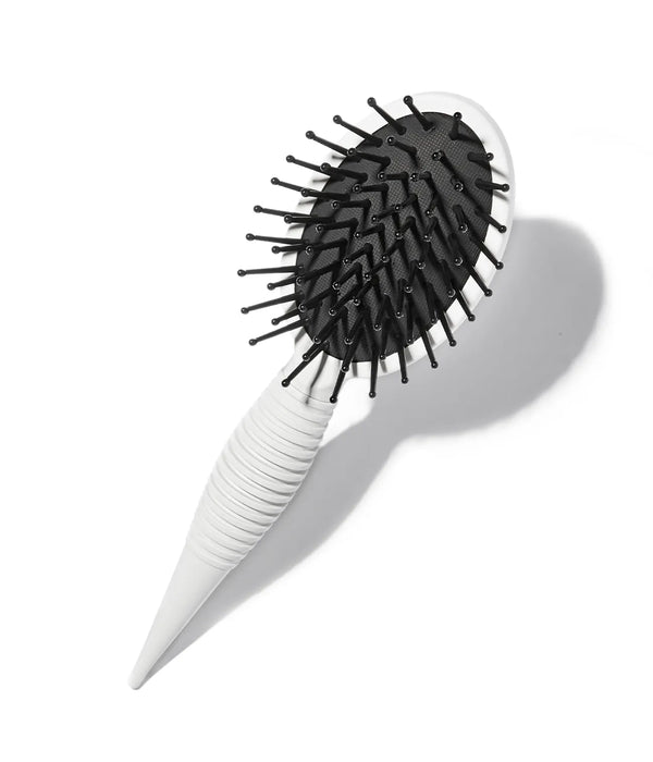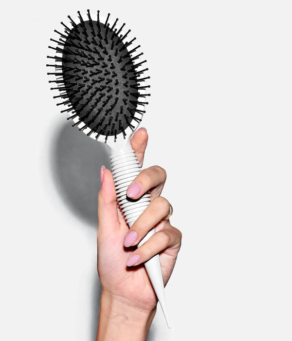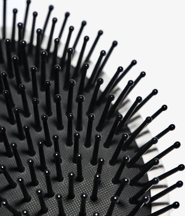 Glossy ball-tip pins glide seamlessly through knots to gently detangle without pulling, while the ultra-soft, natural rubber Cloud Cushion™ contours to your scalp for a soothing, flexible brushing experience that minimizes breakage and split ends.