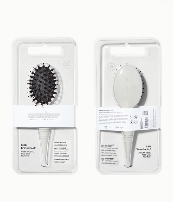 Experience your hair’s ultimate shine and smoothness with the ShineBoost™ Gloss-Infusion Hairbrush Collection—available in both full-size and mini designs. The full-sized ShineBoost™ delivers salon-quality brilliance with every stroke, while the Mini ShineBoost™ offers the same powerful shine and hydration in a travel-ready size that fits perfectly in your handbag or beauty kit.