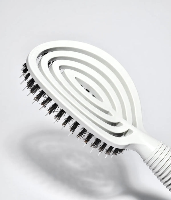 RootRevIV™ hairbrush combines the detoxifying power of charcoal with intense hydration from natural boar, for hair that feels quenched and revitalized. The Scalp Therapy bristles gently exfoliate and stimulate your scalp, helping remove product buildup and revitalize pores. Natural boar bristles infuse dry, dull hair by redistributing natural oils and infusing essential moisture back into each strand. Our flexible, vented brush head features a contoured curve that conforms to the shape of your head, ensuring a comfortable, painless brushing experience. Indulge in the ultimate hydrating and detoxifying experience, designed to revive your hair with luminous shine.