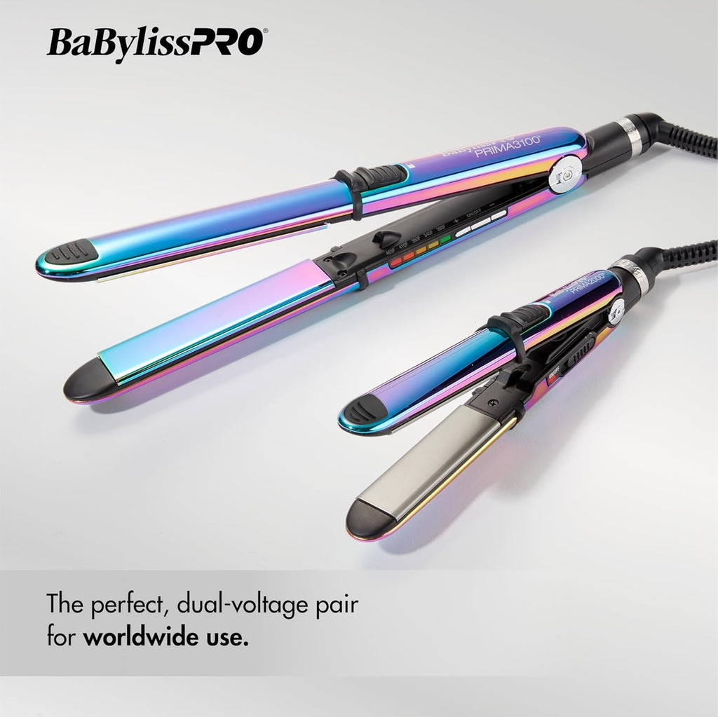BaBylissPRO Limited Edition Nano Titanium Iridescent 1" Stainless Steel Prima 3000 & 3/4" Prima 2000 Flat Irons Value Set (BNTPK1RB)