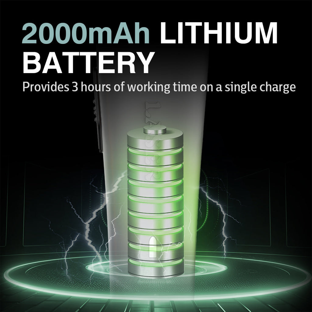 - Long-Lasting Battery: Powered by a robust 2000mAh lithium battery, enjoy a prolonged 3-hour working time on a single charge.