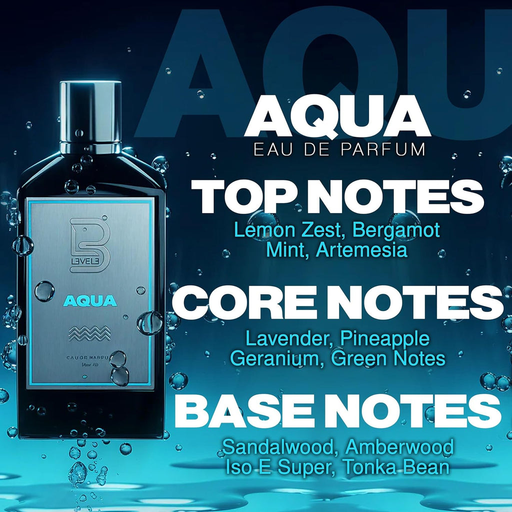 - Aqua: Aqua is a fresh, clean Eau de Parfum made for everyday wear. It starts bright and cool, then settles into a smooth, modern wood scent that stays light on the skin. The overall feel is crisp, calm, and easy to wear.