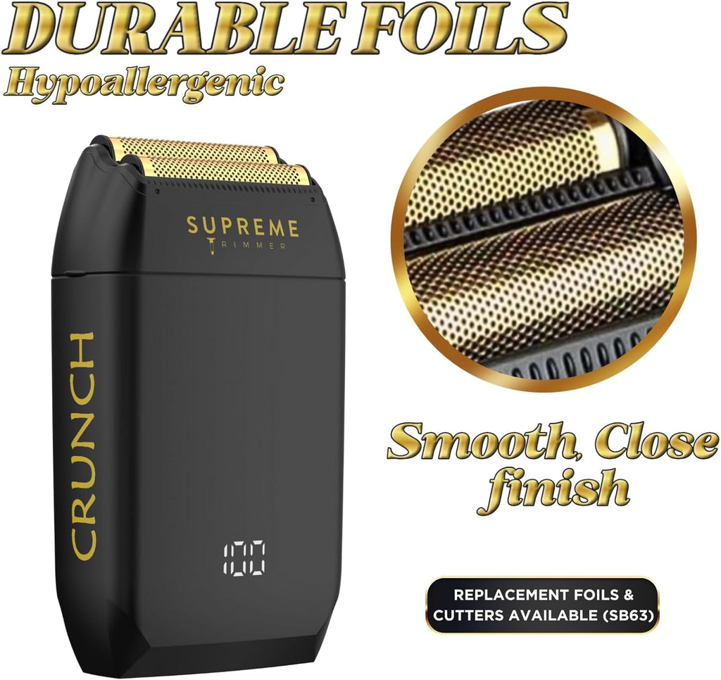 The Crunch Foil Shaver is perfect for skin fades and shaving the head, face, and neck. Waterproof and complete with a full kit, it’s built to tackle any job effortlessly. A must-have for barbers and a great companion for travel. Don't forget to check out Replacement Foil Cutters SB62/SB63