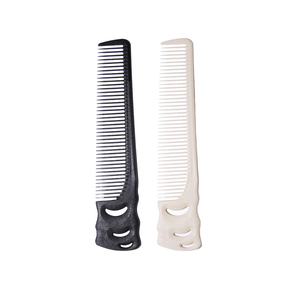 Smooth yet strong, the YS Park 213 Barber Comb is crafted from ultem (polyetherimide) plastic for exceptional durability, flexibility, and heat resistance up to 428°F (220°C). Designed with a larger spine and extended teeth (2 mm thick), this model offers superior strength and control compared to other barber combs in the YS Park collection. At 6.9 inches (175 mm), it’s perfectly sized for versatile use behind the chair.
