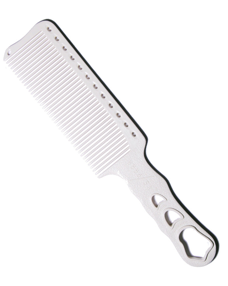 Designed for all kinds of clipper-over-comb work including fades, tapers and flat tops. It's made with extra-rigid teeth to ensure they won't flex under your clippers, giving you precise results. The handle has been molded with a non-slip, "leather" pattern and has an ergonomic shape that helps you hold the 282 comfortably and securely. There's also a large hook eye to make it easy to hang the comb up at the end of the day. The spine features Y.S. Park's signature section holes spaced at centimeter intervals, making it simple to measure even sections. The teeth have a gradual pitch (2-mm thick at the edge, 3.8-mm thick at the spine) that gives an even, secure hold on each hair section.