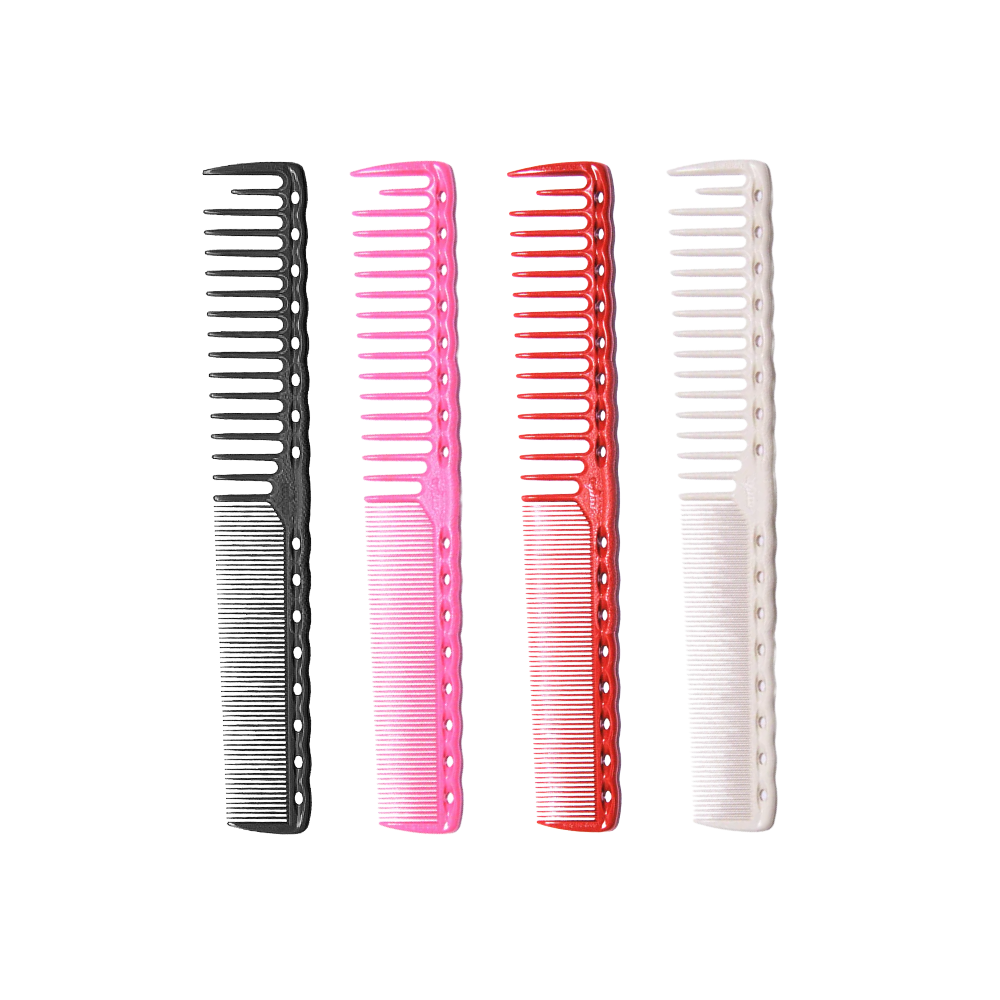 The YS-332 is ideal for advanced or basic fine cutting. It is smooth and strong, being built from durable ultem (polyetherimide) plastic which can withstand temperatures up to 428°F (220°C). Engineered with gradually decreasing pitch, where the spacing between each tooth is gradually narrowed by 10 microns to facilitate even tension on the hair through every stroke.