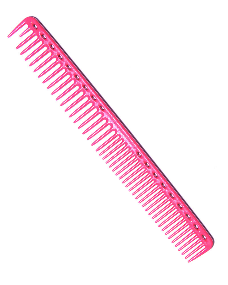 The YS-333 has round teeth that are excellent for creating a loose tension, so textures in the hair can be made with ease. It has the signature Y.S. Park shortened parting tooth at the front for easy hair pickup. The holes in the body add to the plastic’s lightweight and flexible qualities, while also providing evenly-spaced marks for at-a-glance measuring. This is Y.S. Park’s longest round-tooth comb.